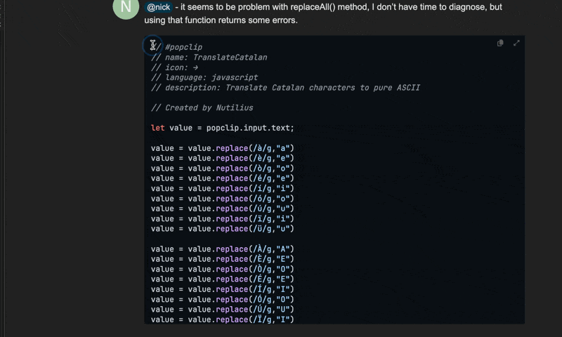 I’d like to ask if it would be possible to create a PopClip extension that performs these replacements: