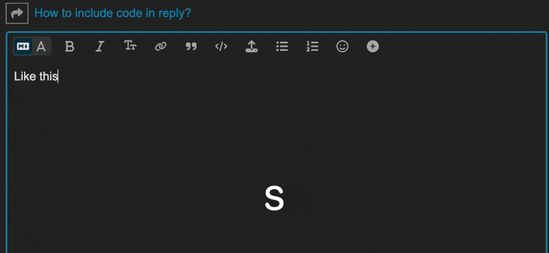 What is the proper way to include code in a forum reply?