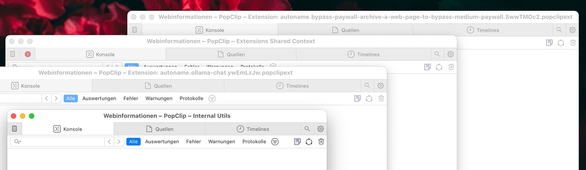 Interestingly, whenever I launch 2025.9(.1) I either find Safari crashing on launch, or if it’s already running I am getting four blank JS-Console windows in Safari.