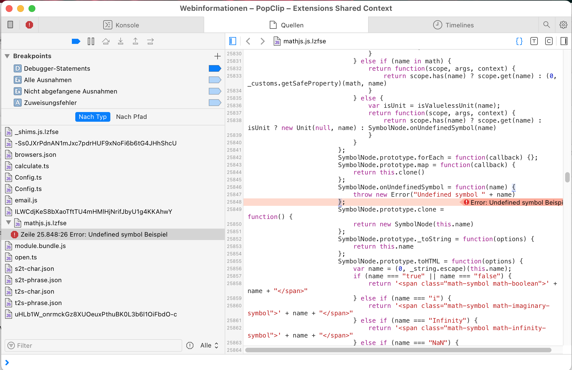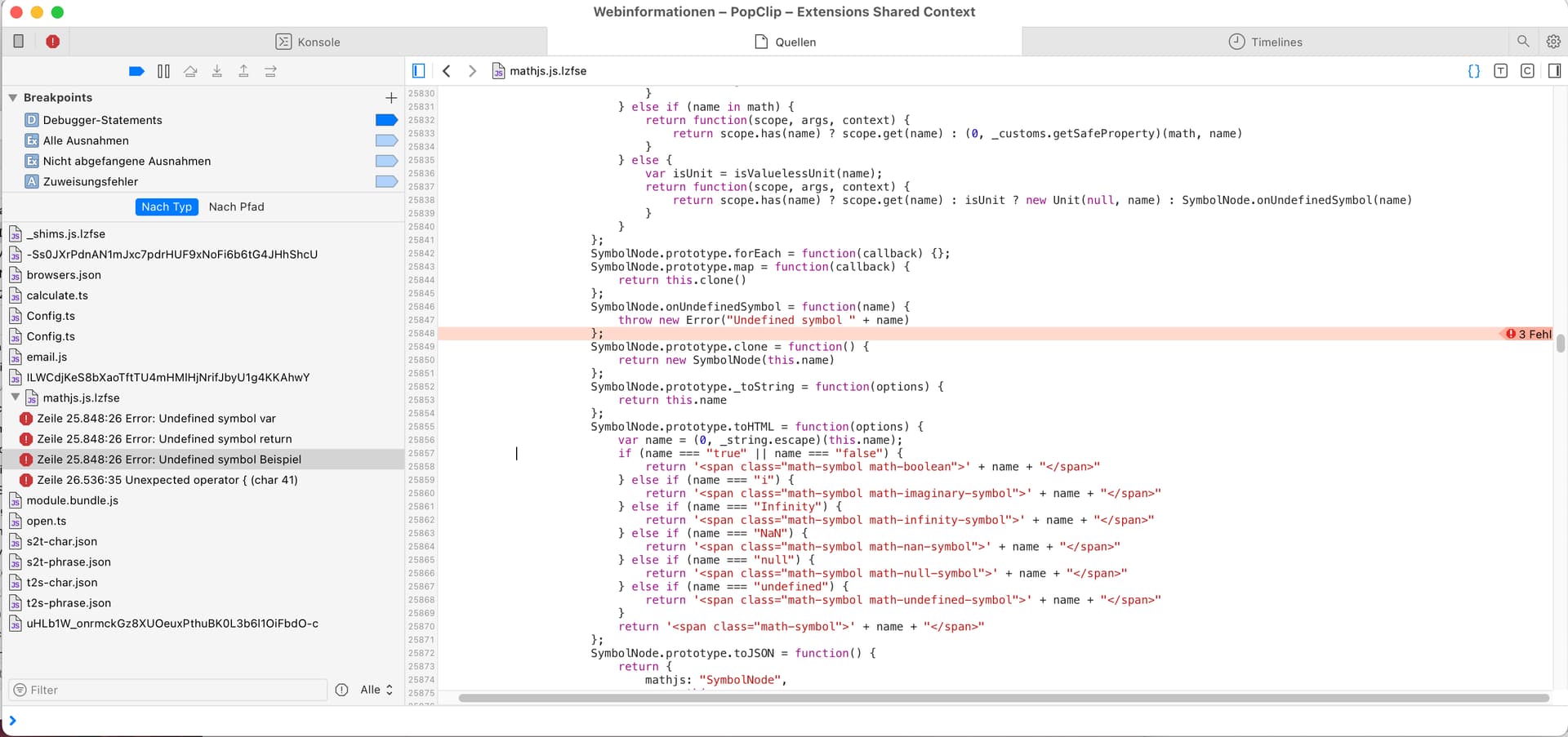 But still, if PC in its default state is launched while Safari is running, I get a console for PopClip Internal Utils, debugger statements andB breakpoints both off.