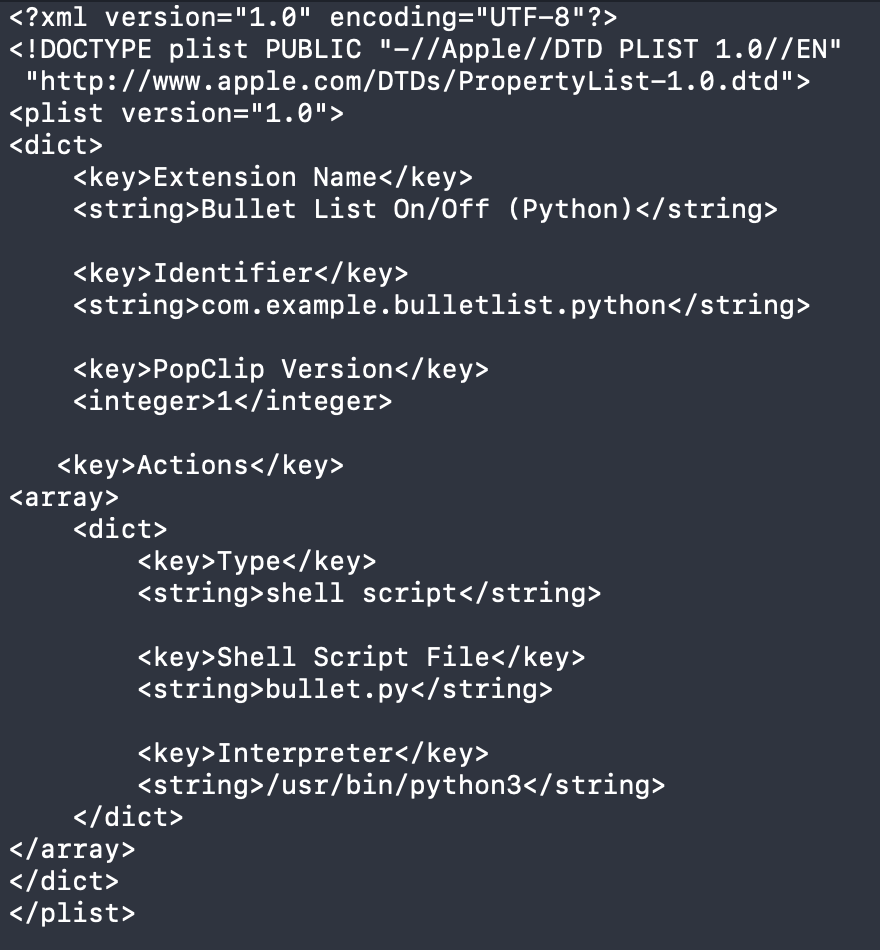 When I copied your extension above to a text file (Named “BulletList.popclipext”), popclip didn’t recognize it when I double clicked it, or single clicked it with “Open With”.